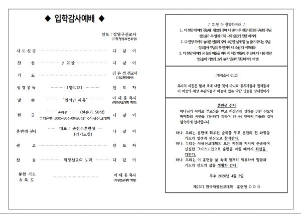 23기 입학감사예배 > 1단계 양식